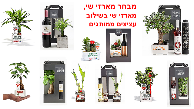 ניתן לבחור ב מארזי שי עם מבחר מעדנים לבחירתכם בשילוב עציץ ממותג
